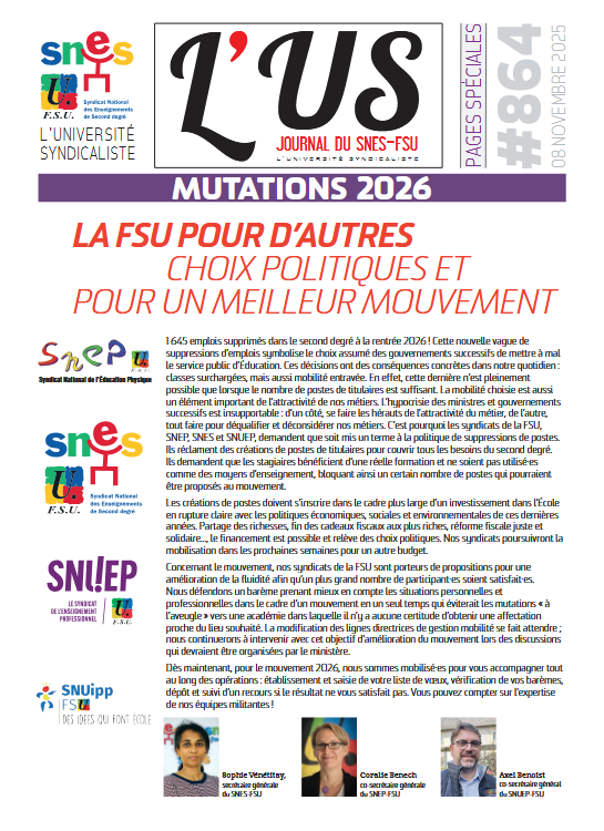 ACTU' 147 PUBLICATION NATIONALE SNUEP-FSU - SEPTEMBRE 2025